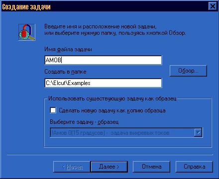 Затем вводится имя и путь для нового описания задачи, причем можно использовать уже существующую задачу как образец рисунок 3.2.