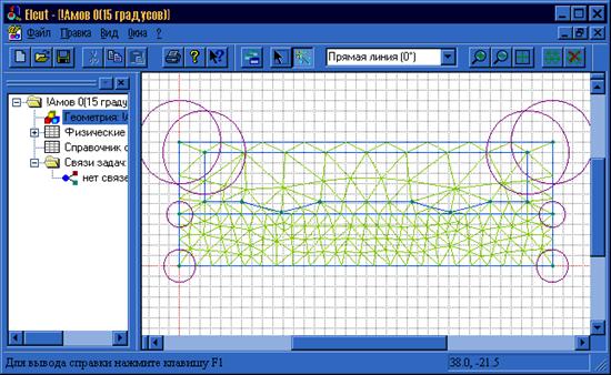 · Сетка конечных элементов – позволяет видеть сетку треугольников в блоках, где она построена. Этот режим рекомендуется включать при триангуляции блоков.