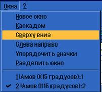 Можно также открыть несколько окон для одной и той же модели, выбирая в каждом из них разный масштаб и степень детализации изображения. Чтобы сделать это, выбирается команда «Новое окно» в меню «Окна», или воспользуйтесь соответствующей кнопкой на панели инструментов. Для различных манипуляций с окнами можно использовать соответствующие функции в меню «Окна» рисунок 3.6.