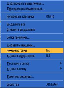 1. Выбирается команда Режим вставки в меню Правка или в контекстном меню (правая кнопка мыши), либо можно нажать клавишу INS для перехода в режим вставки рисунок 3.7.