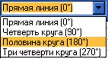 2. Используя выпадающий список в панели инструментов модели для выбора типа новых ребер (отрезок или дуга) и угол раствора дуги. Можно использовать имеющиеся в списке величины углов или ввести любое другое значение; нулевой угол обозначает отрезок прямой рисунок 3.9.