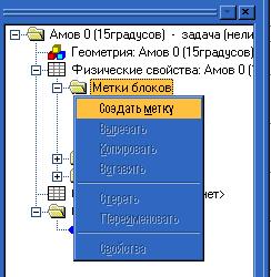 Для того чтобы создать свойства для нового блока необходимо в окне структуры задачи вызвать контекстное меню при помощи правой клавиши мыши, предварительно поместив курсор на папке «Метки блоков». Затем выбирается пункт «Создать метку» рисунок 3.13.