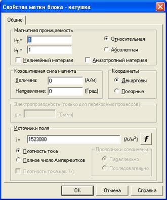 Результаты расчета: магнитный потенциал, магнитная индукция, напряженность магнитного поля, силы, моменты, энергия магнитного поля, потокосцепления, собственные и взаимные индуктивности.