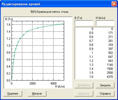 Рисунок 3.15 – Окно редактирования кривой намагничивания