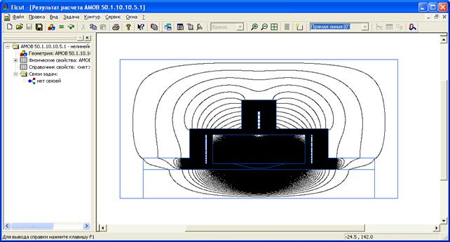 Когда используется команда анализа решения, ELCUT открывает новое окно, в котором изображается картина вычисленного поля. В этом окне можно: