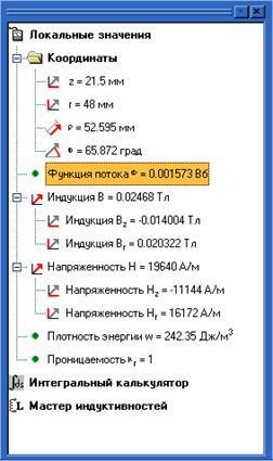 – Локальные значения отображают различные полевые характеристики в указанных пользователем точках расчетной области;