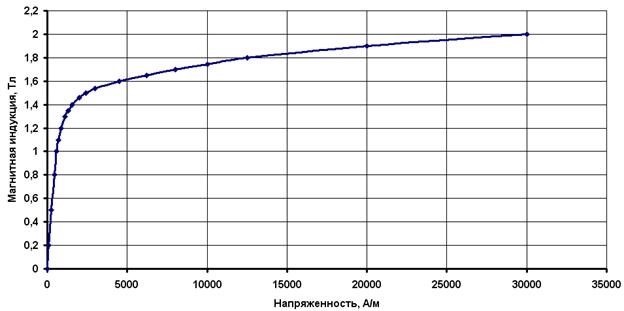 Исходя из условий задачи магнитопровод выполнен из стали Ст3, кривая намагничивания которой представлена на рисунке 3.42 (ПРИЛОЖЕНИЕ Л).
