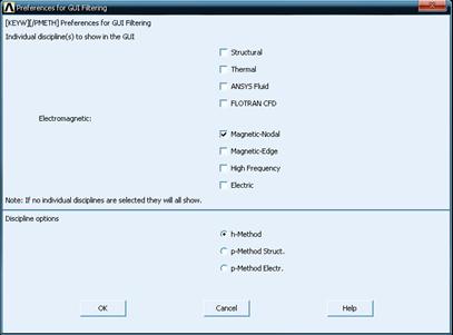В данном окне необходимо выбрать Magnetic-Nodal (магнитный-узловой). Благодаря этому все лишние пункты в Main Menu исчезнут, что облегчает поиск и выбор необходимых параметров.