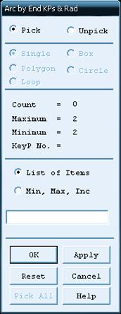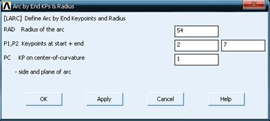 3. Main Menu > Preprocessor > Modeling > Create > Lines > By End KPs & Rad