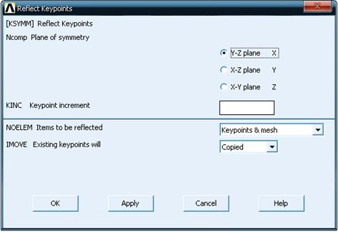 9. Main Menu > Preprocessor > Modeling > Reflect > Keypoints