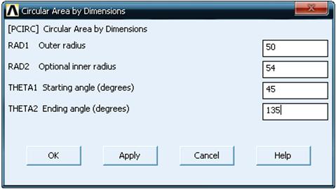 12. Main Menu > Preprocessor > Modeling > Create > Areas > Circle > By Dimensions