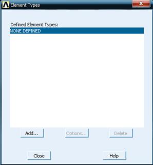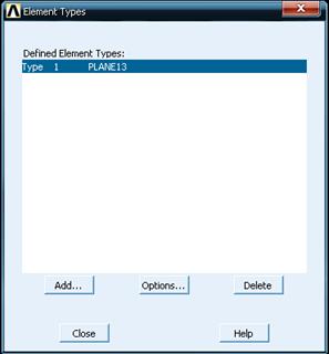 15. Main Menu > Preprocessor > Element Type > Add/Edit/Delete