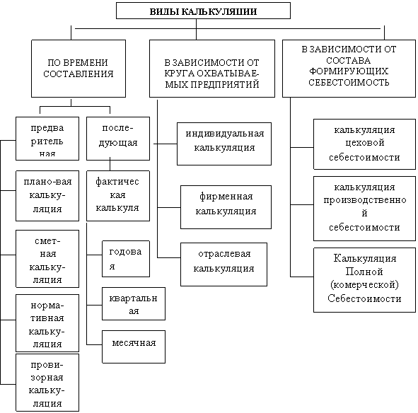 Рис. 2 Классификация калькуляции в зависимости от различных признаков