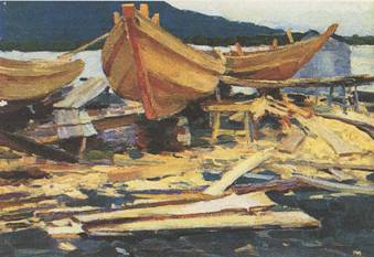 в) Рассказы художника о своеобразной красоте то спокойного, то бурного моря, об изумрудных гребнях волн (морской пейзаж).
