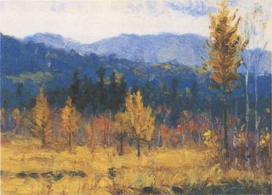 «Все в русской природе непостоянно по окраске и состоянию. Деревья то с голыми ветвями, создающие своеобразную «графику зимы», то с листвой яркой, весенней насыщенной живописной. Разные состояния воды, принимающие на себе окраску неба и окружающих берегов, лужи дорожные, роса, туман… Вечные, вечный маскарад, вечный праздник красок и линий, вечное движение – в пределах года или суток».