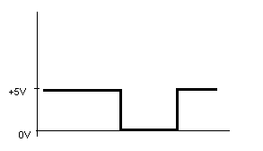 На этом рисунке, как выглядит логическая "1"-ца представлена электрическим сигналом напряжения +5V, и логический "0" представлен как электрический сигнал напряжением 0V.