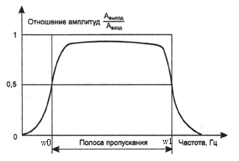 Или можно сказать еще так, что полоса пропускания (bandwidth) - это непрерывный диапазон частот, для которого отношение амплитуды выходного сигнала ко входному превышает некоторый заранее заданный предел, обычно 0,5.