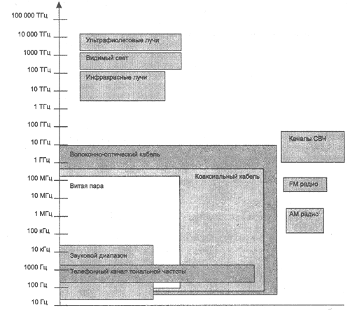 Рис. 4.12 Полосы пропускания линий связи различных типов