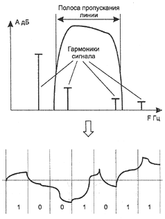 Как же определить, какие скорости нужны линии при известных характеристиках сигнала? Ведь нужно обеспечить передачу исходного сигнала в любом случае, и если реальный его спектр выходит за пределы полосы пропускания линии, нужно представить его в таком виде, в котором передача будет все-таки не просто возможна, но возможна без существенных искажений.