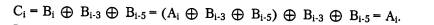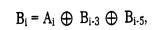 где Bi - двоичная цифра результирующего кода, полученная на i-м такте работы скрэмблера, Ai - двоичная цифра исходного кода, поступающая на i-м такте на вход скрэмблера, Bi-3 и Bi-5 - двоичные цифры результирующего кода, полученные на предыдущих тактах работы скрэмблера, соответственно на 3 и на 5 тактов ранее текущего такта, Å - операция исключающего ИЛИ (сложение по модулю 2).