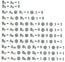 B1 = А1 = 1 (первые три цифры результирующего кода будут совпадать с исходным, так как еще нет нужных предыдущих цифр)
