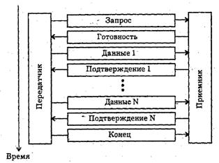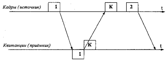 Рис. 6.3 Обмен кадрами и квитанциями при методе с простоями