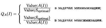 Решения, предлагаемые приближенными алгоритмами для задач класса NP, не будут оптимальными, поскольку алгоритмы просматривают только часть множества PSI, зачастую очень маленькую. Качество приближенного алгоритма можно определить, сравнив полученное решение с оптимальным. Иногда оптимальное значение — например, минимальную длину пути коммивояжера — можно узнать, и не зная оптимального решения — самого пути. Качество приближенного алгоритма при этом дается дробью