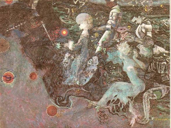 Юная красавица Персефона собирала цветы на лугу. Внезапно развезлась земля и перед ней предстал бог Аид - мрачный владыка подземного царства мертвых.