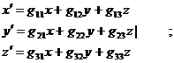 причем это число будет уже удовлетворительным представителем группы. В более общем случае можно было бы рассматривать три координаты X, Y,Z точки на единичной сфере, и смотреть, что с ними происходит при различных преобразованиях группы. Если операция R группы переводит точку М(X, Y,Z) в положение M¢(X¢,Y¢,Z¢), то это преобразование координат может быть записано:
