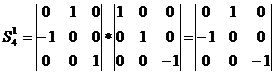 Последовательное применение нескольких операций будет описываться матричным произведением исходных представлений. Действительно, пусть преобразование А дает X¢=АX. Последующее преобразование B дает: X¢¢=BX¢, или через X: X¢¢=BAX, X¢¢=CX, где C=BA. Преобразование с коэффициентами C является произведением двух преобразований и осуществляет таким образом представление операции C=AB. В частности, зеркально-поворотная ось четвертого порядка S41=C41*Cn2 может быть представлена матрицей: