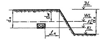 Lк - расстояние от верхней бровки котлована до существующего фундамента подземных коммуникаций;