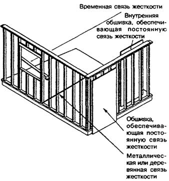 Вертикальные и горизонтальные элементы каркаса стен разделяют внутреннее пространство стены на замкнутые ячейки и выполняют функции противопожарных диафрагм.
