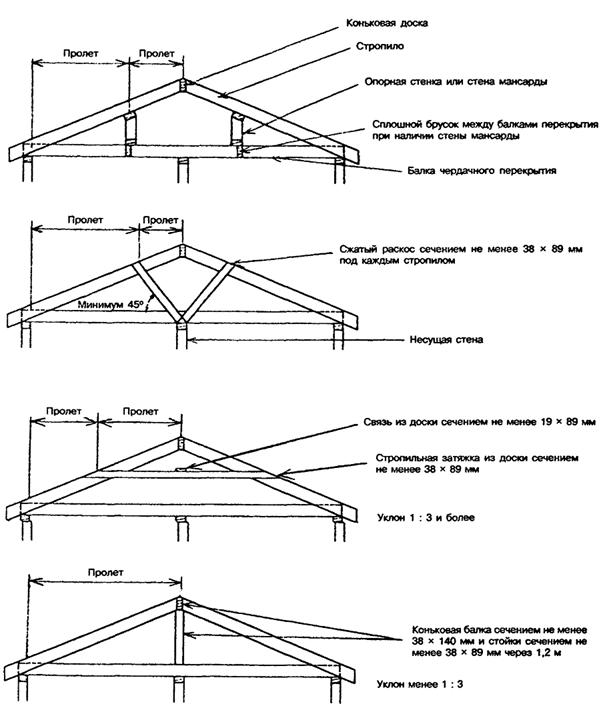 8.2.2 Несущий каркас скатной крыши с уклоном 1:3 и более, собираемый на месте