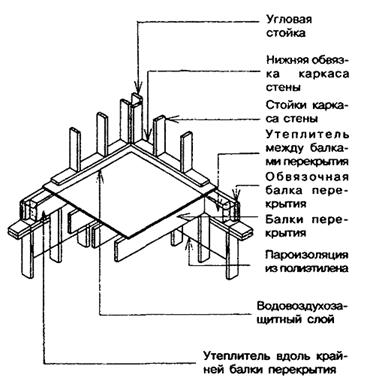 Рисунок 9.2 - Укладка утеплителя в местах расположения ниже обвязочных и крайних балок перекрытия