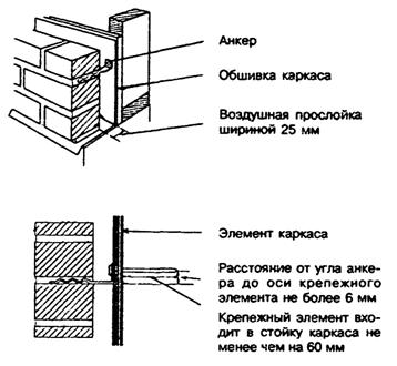 10.3.3.1 Каменная кладка облицовки, опирающаяся на несущие опорные элементы, должна крепиться к деревянному каркасу стены металлическими анкерами (см. пример на рисунке 10.1), которые должны быть: