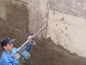 - при ликвидации активных протечек расшить в бетоне/камне отверстие диаметром минимум 20 мм, либо выбрать материал до ненарушенного, прочного слоя;