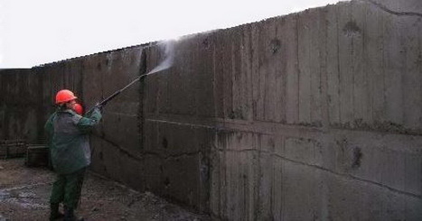 4.3.2.1 Поверхность защищаемой конструкции необходимо освободить от штукатурки, малопрочного бетона и плотной цементной пленки посредством пескоструйной обработки или зачистки металлическими щетками, скребками, отбойным молотком. Для очистки больших площадей поверхности рекомендуется использовать гидромониторы высокого давления. Если при этом не будет достигнут достаточный эффект, то возможно применение других способов очистки, в т. ч. химических, с обработкой поверхности кислотными или солевыми растворами. Цементную пленку следует удалять при помощи углошлифовальной машины. Подготовленная поверхность должна иметь открытую капиллярную структуру, быть чистой без шелушения, следов опалубочной смазки, цементной пленки, высолов, потеков масла и т. д.