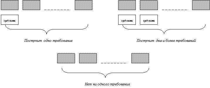 2) Отсутствия последействия, которое обуславливает взаимную независимость поступления того или иного числа требований на обслуживание в непересекающиеся промежутки времени. Это значит, что число требований, поступающих в данный отрезок времени, не зависит от числа требований, обслуженных в предыдущем промежутке времени. Например, число автомобилей, прибывших за материалами в десятый день месяца, не зависит от числа автомобилей, обслуженных в четвертый или любой другой предыдущий день данного месяца.