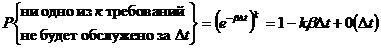 Вероятность того, что за время Dt будет обслужено одно из к требований, находящихся в системе, найдем следующим образом: