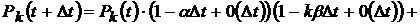 - В момент t система находилась в состоянии Ek, за время h новых требований не поступило, и ни один прибор не окончил обслуживания. Вероятность этого события равна