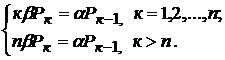 Для к ³ n заметим, что за время Dt может быть обслужено не более чем одно из n требований, так как число обслуживающих приборов равно n.