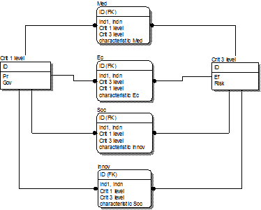 Каждый из приведенных в таблице 1 критериев соответствует своей группе индикаторов, представляющих собой приведенные к безразмерному виду (выраженные в баллах) характеристики проекта. При этом (как и в [2,3]) изначальные значения индикаторов могут быть не только детерминированного, но и стохастического, а также лингвистического типа.