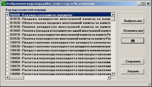 7. В пункте главного меню Сервис в подпункте меню Настройка добавлен новый пункт меню Отображение кода вида работ, услуг и т. д. из ПС, в платеже.