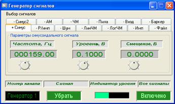 Плавно увеличивают напряжение генератора, до тех пор, пока уровень на вольтметрах не увеличится на 20 дБ, что служит критерием исправности виброметра и ВИП. В программе осциллограф нажимают на кнопку «Автомасштаб». Колебания в виде синусоиды должны наблюдаться во всех окнах. Искажений быть не должно.После проведения опробования закрывают окна всех программ.