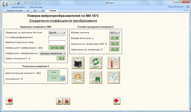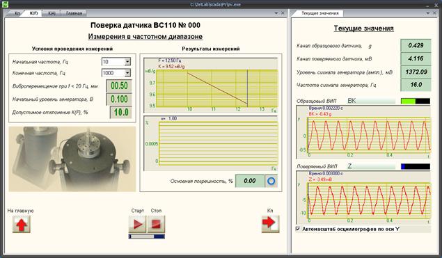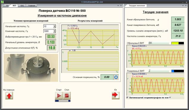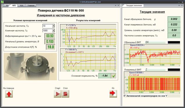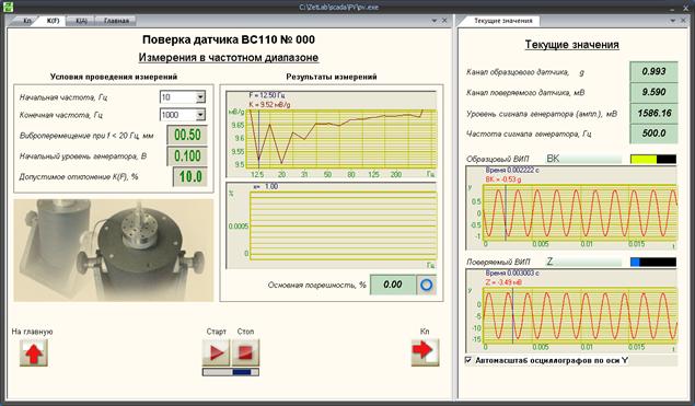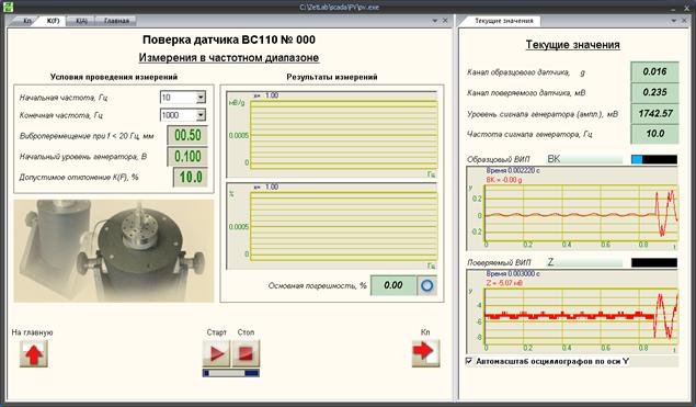 4 Запускают scada-проект «Поверка вибродатчиков по МИ 1873», при этом откроется главная страница проекта (Рисунок 6.3).