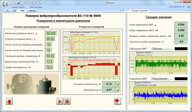 · результат проверки основной погрешности ВИП в диапазоне амплитуд и нелинейности амплитудной характеристики на рисунках-индикаторах.