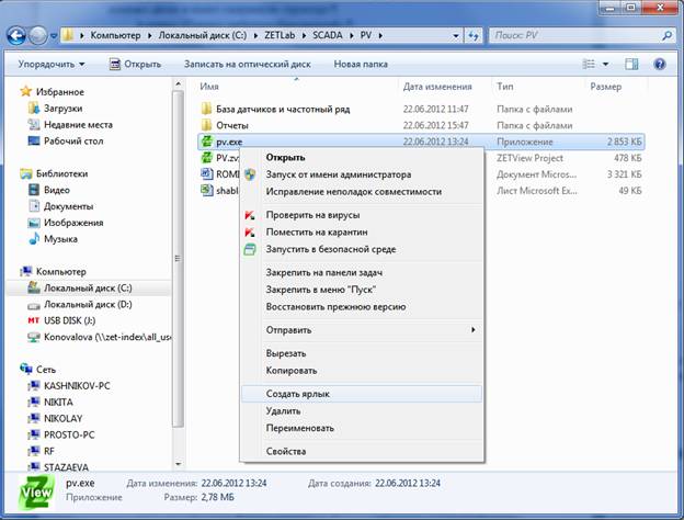 · исполняемый файл программы «PV. exe»,