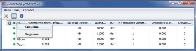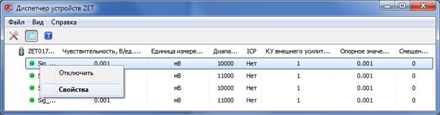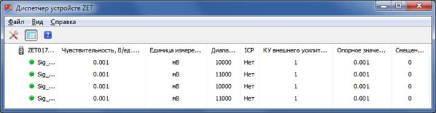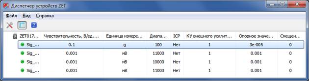 Во всех программах ZETLab, в том числе в проекте «Поверка вибропреобразователей», для каждого измерительного канала предусмотрен индикатор