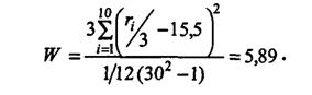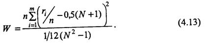 Знаменатель выражения (4.13) — средний квадрат отклонения от среднего ранга всех элементов последовательности. Если все Хi имеют один и тот же закон распределения, то W принимает малые значения, при разных законах распределения Хi, (т. е. при отсутствии стационарности) W принимает большие значения.