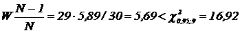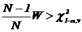 При совпадении законов распределения Хi статистика W(N-l)/N имеет χ2- распределение с числом степеней свободы v=m-1. Поэтому для проверки гипотезы о стационарности потока (одинаковости распределений случайных величин Xi) необходимо: